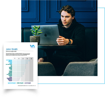 Our free survey provides your rank order list of character strengths with the strengths that are most core to your identity at the top. A VIA Report provides personalized, in-depth analysis of your character strengths, including actionable tips to apply them to find greater well-being.