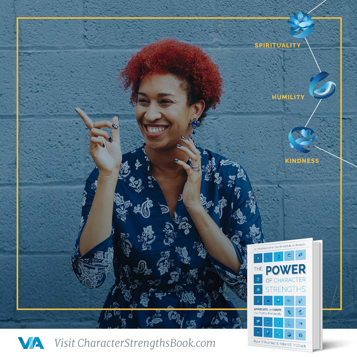 “We can examine the importance of character strengths through a positive lens. Research has shown many positive benefits of using character strengths across physical, psychological, emotional, social, and spiritual domains. The benefits of character strengths have been demonstrated in many industries—especially business and education—but also in healthcare, coaching, and psychotherapy and counseling, to name a few. Specific benefits of character strengths have been linked with each of the main elements of well-being: positive emotions, engagement, meaning, positive relationships, and accomplishment. They’ve been connected with many other benefits that help us amplify the positive in our life, such as self-acceptance, autonomy, goal progress, physical health, passion, and resilience. The newest research is showing that techniques for helping people boost their strengths can have important advantages over techniques that focus on correcting their deficits. But focusing on the positive is not the same as ignoring the negative.”